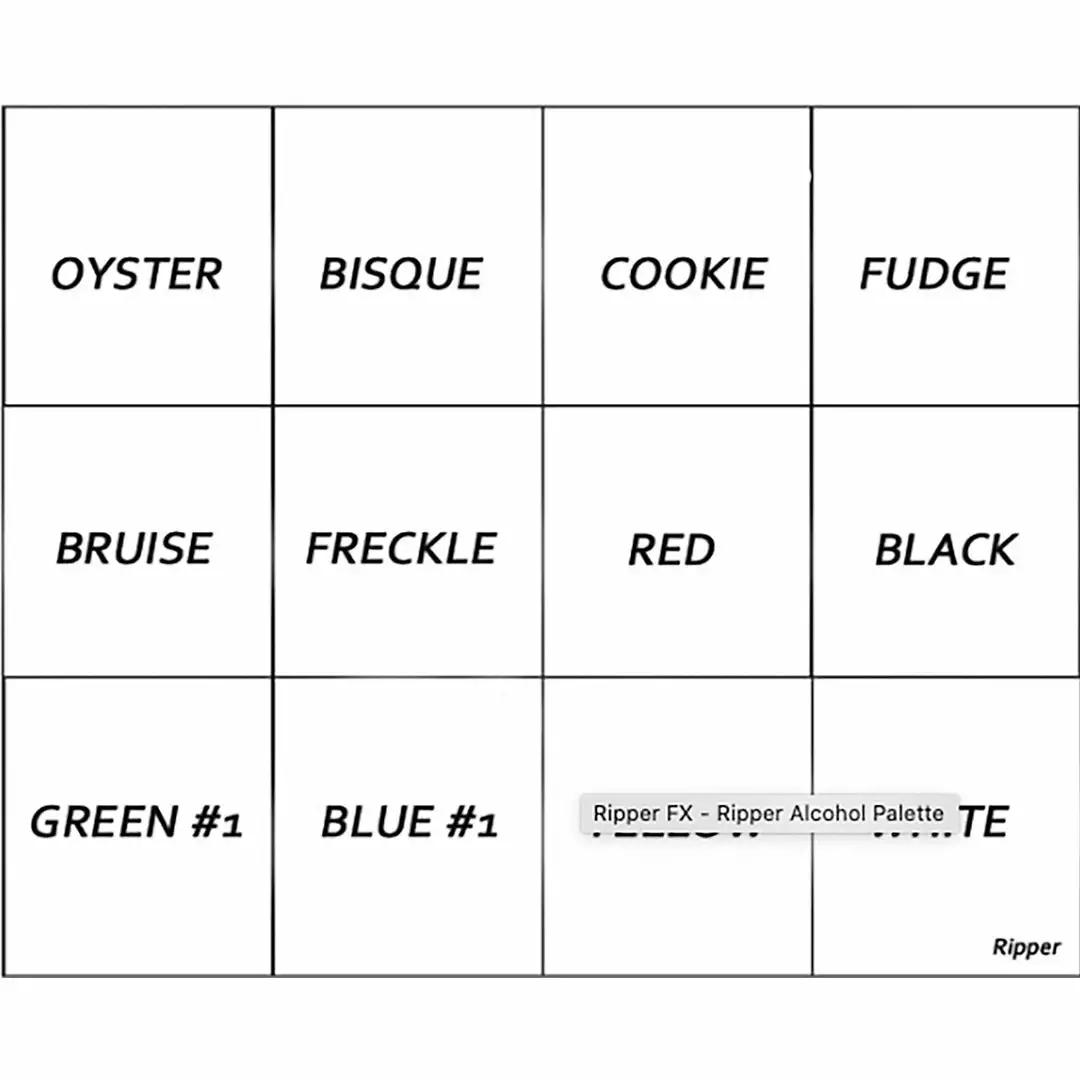 Ripper FX Large Palettes are an alcohol activated (AA) make-up colour palette. It is a high-end professional product that is designed for use on high definition camera work.