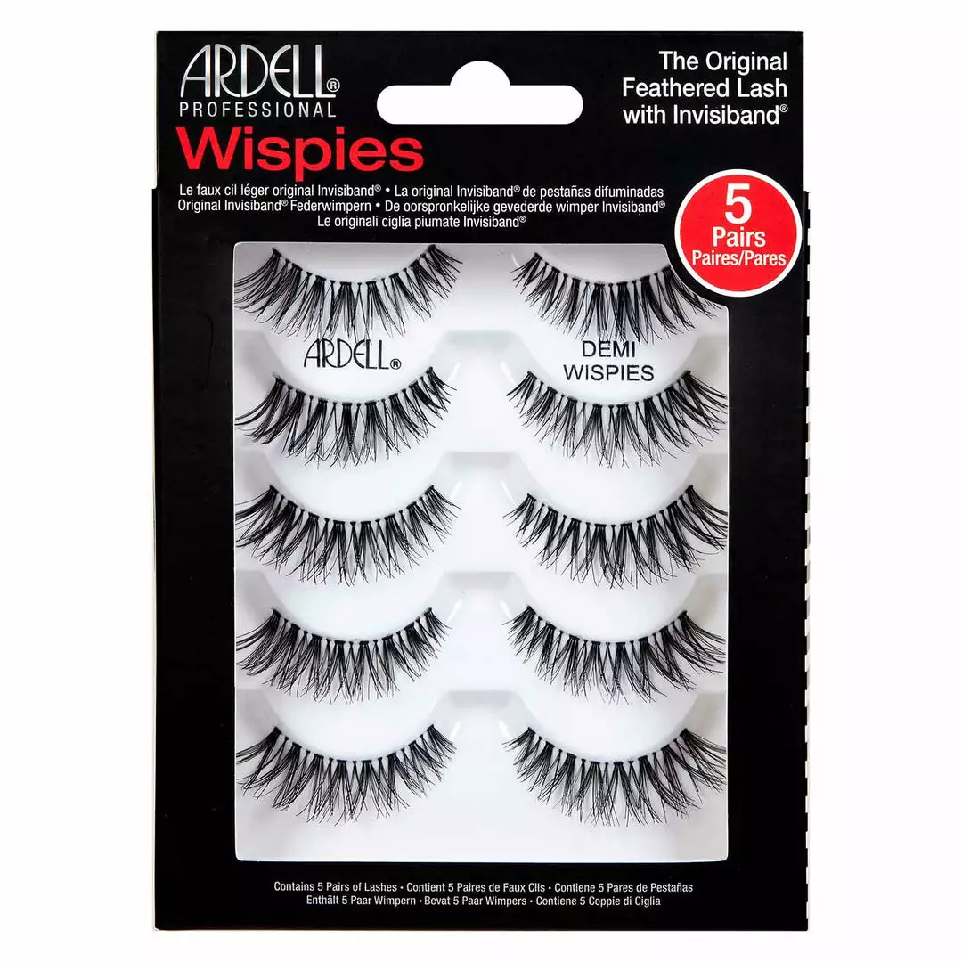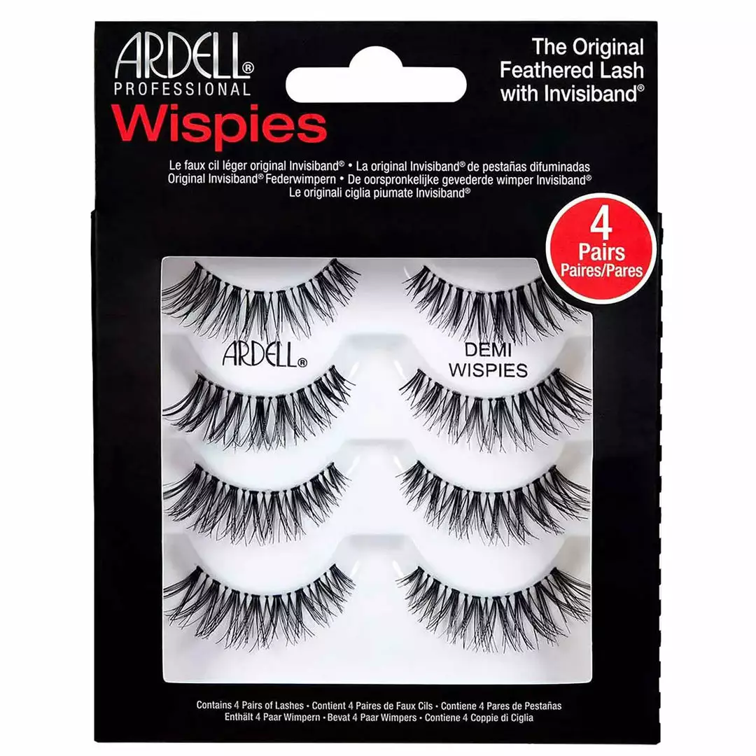 Wispies feature medium volume with medium length, a Flared lash style: shorter at the inner corner and longer at the outer corner with signature crisscross pattern, feathering and curl. Featuring a slightly narrower band than a regular strip lash. It is also on Ardell’s legendary Invisiband®; providing an undetectable lash band and the most comfortable wear.