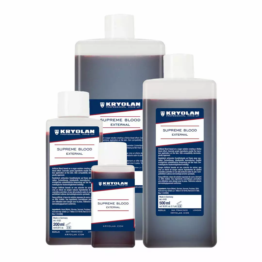 Supreme Blood External is Kryolan’s latest blood development and superior to other sugar-based blood formulas available from other professional brands.
