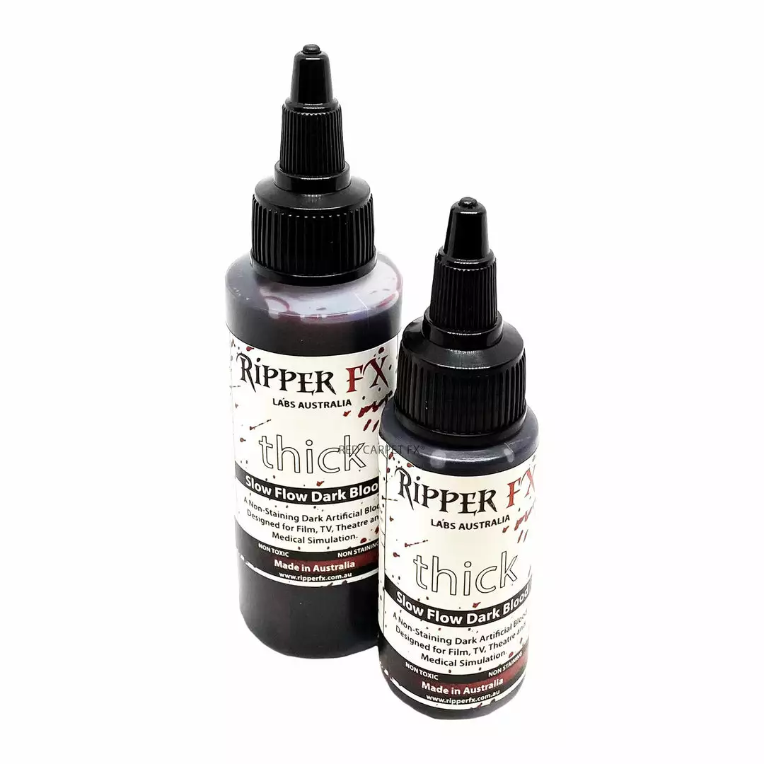 Ripper FX Thick Blood is a slow flowing professional film, television and theatrical fake blood.