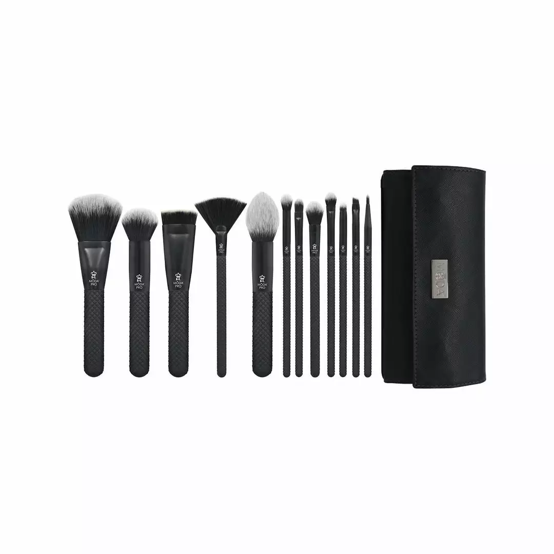 This perfectly curated 13-piece kit has the essential MŌDA® Pro brushes for a full face of makeup on-the-go. Quilted black handles and a textured black brush roll make these professional beauties a real standout!