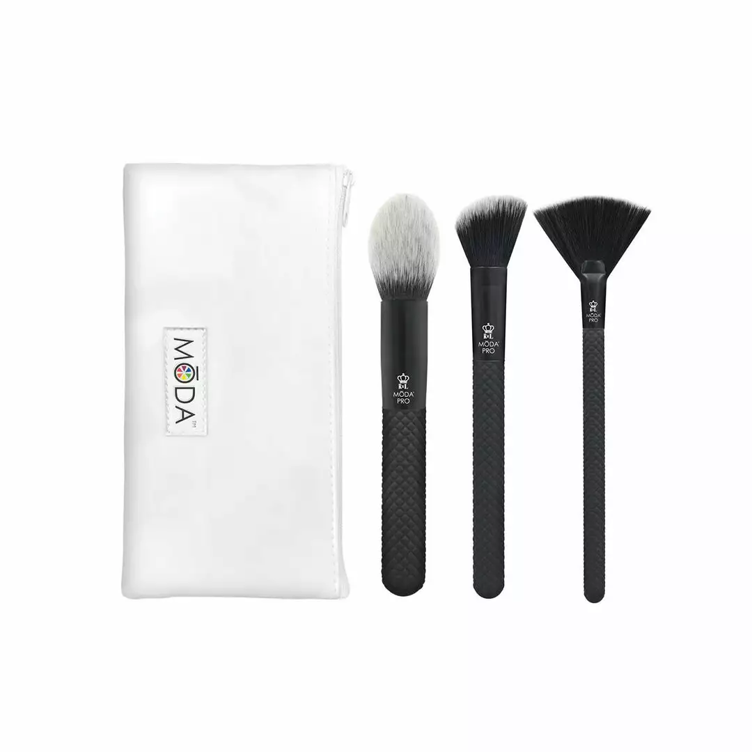 MODA® PRO takes MODA® to the next level! This line features superior quality filaments and modern, professional shapes. This is the perfect kit of brushes to add finishing touches to your face.