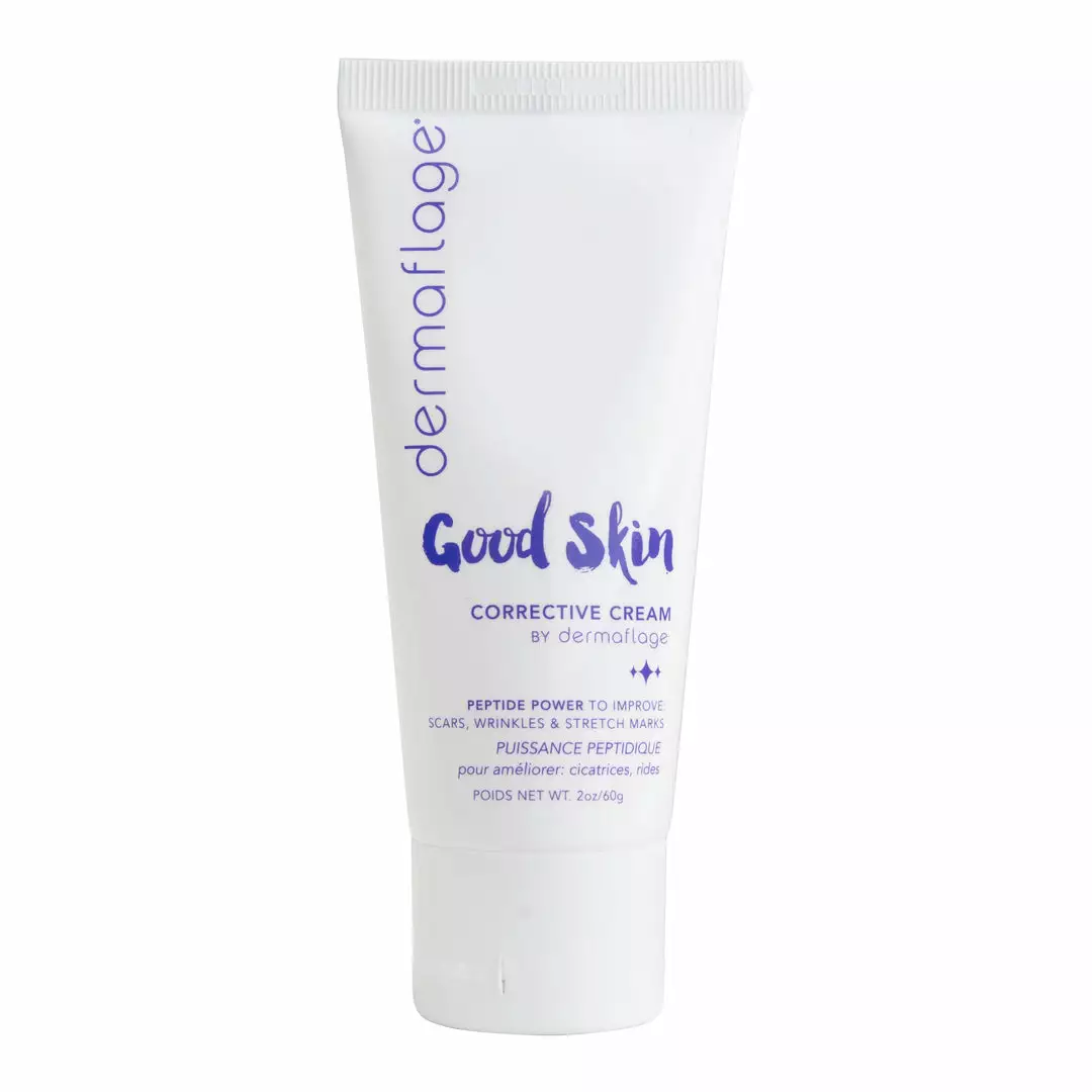 Good Skin Corrective Cream is made by the scar experts at Dermaflage. This cream contains a range of ingredients with specific purposes, including; silicone to help the skin prevent acne scars, surgery scars, fade stretch marks and diminish older scars, Squalene to restore moisture balance of the skin to calm irritation, Peptide to diminish wrinkles and the forehead and neck and finally antioxidants to protect and restore damaged or sensitive skin.