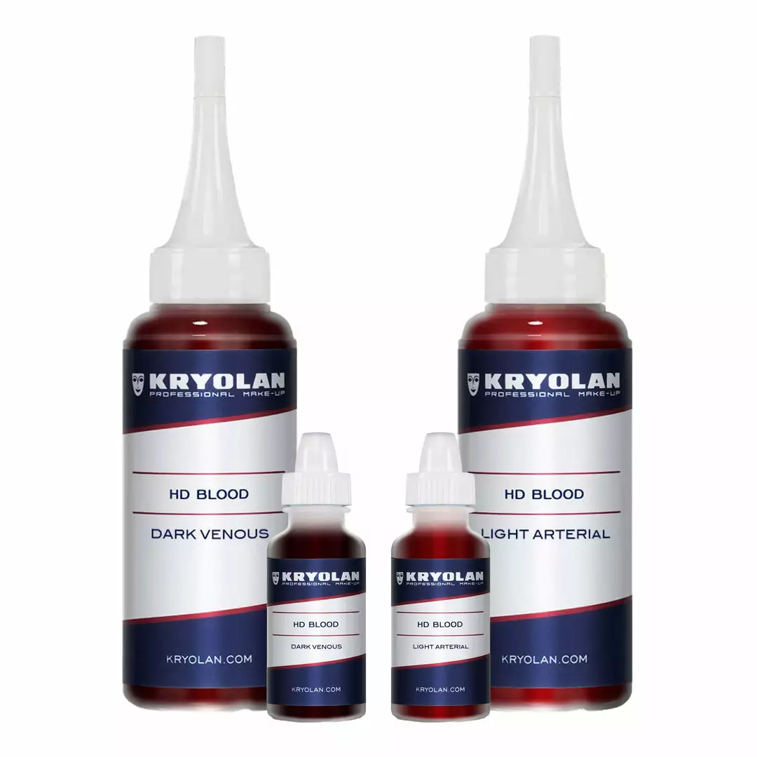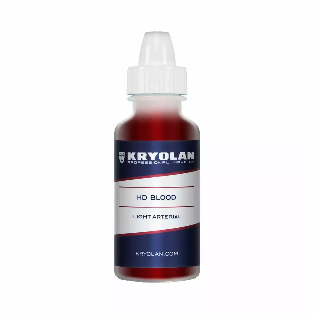 HD Blood is engineered by Kryolan in cooperation with world leading special effects make up designers. It is a perfect imitation of human blood for high definition cameras and filming. Path tracing, specialised opacity and colour gradients are optimized for sensitive cameras and result in a very realistic blood effect in direct observation.Â