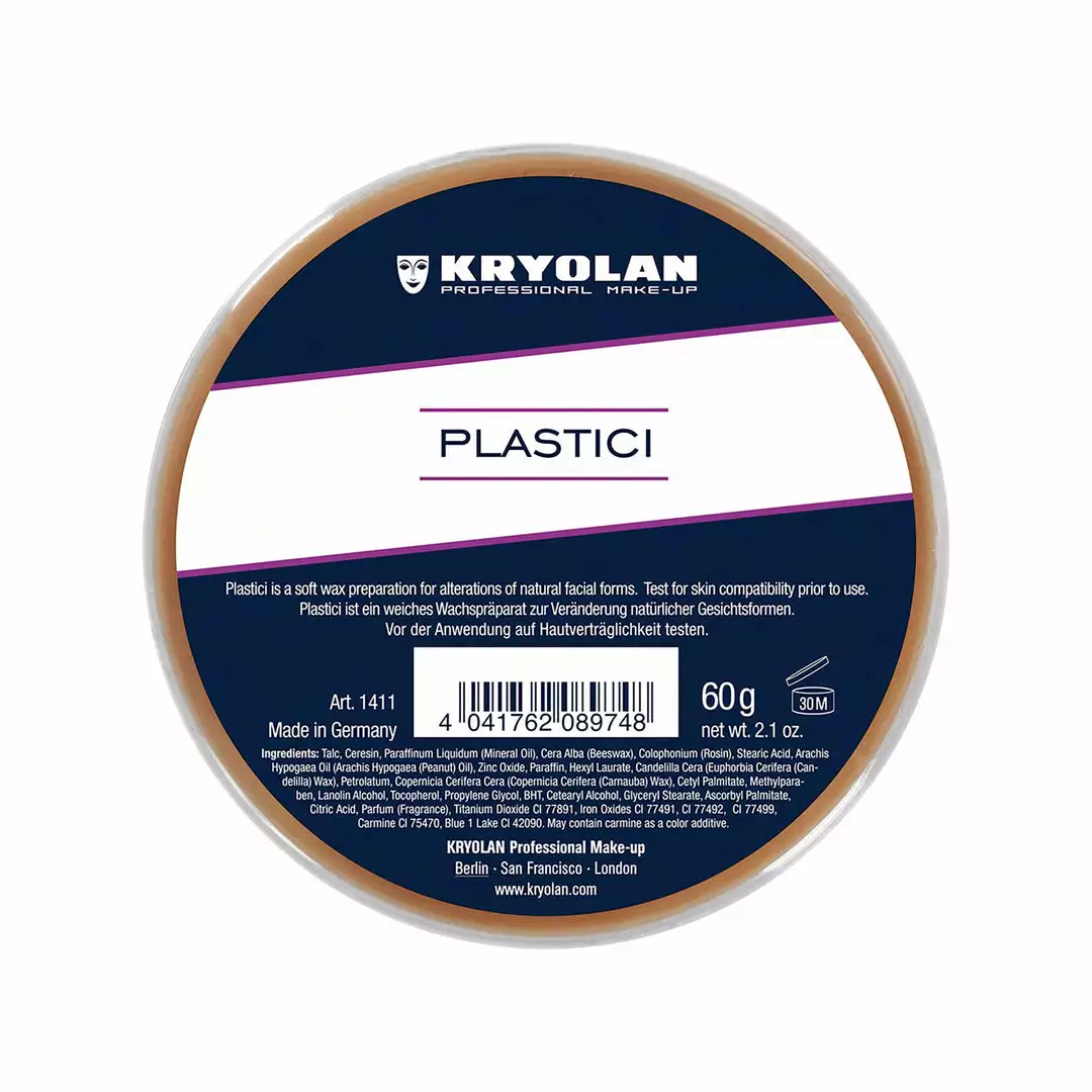 Kryolan Plastici is a modelling wax product used for alterations to facial features such as noses and cheek bones, as well as the creation of cuts, lacerations and other special fx uses. Its composition is a blend of both synthetic wax, and bees wax gives the product a ideal texture and consistency.