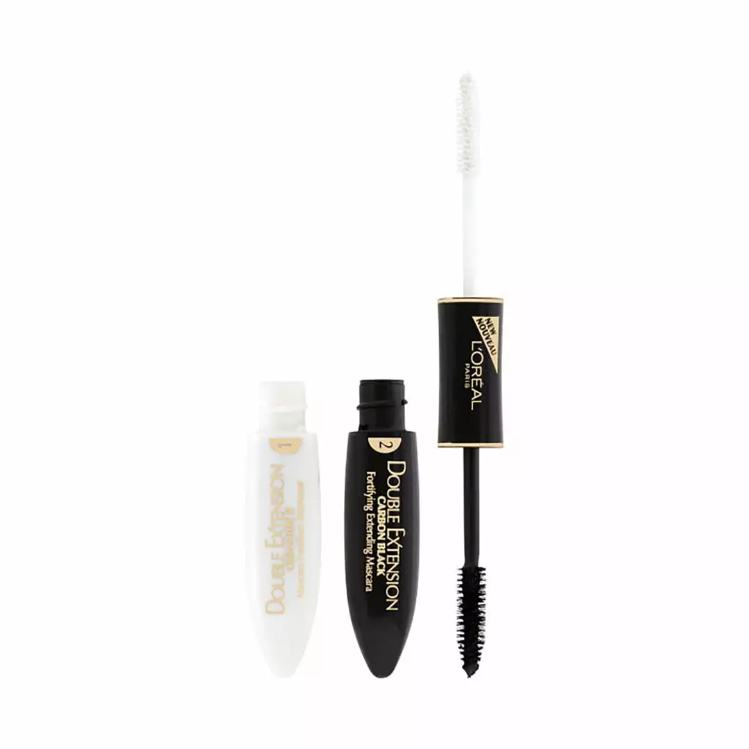 L’Oréal Paris Double Extension Mascara is a 2 step Mascara which is composed of a conditioning white base coat with Ceramide R which contains fibres that act like extensions to visibly lengthen the appearance of your lashes. A lengthening Mascara with a patented brush which evenly distributes intense colour from root to tip, with virtually no clumping.