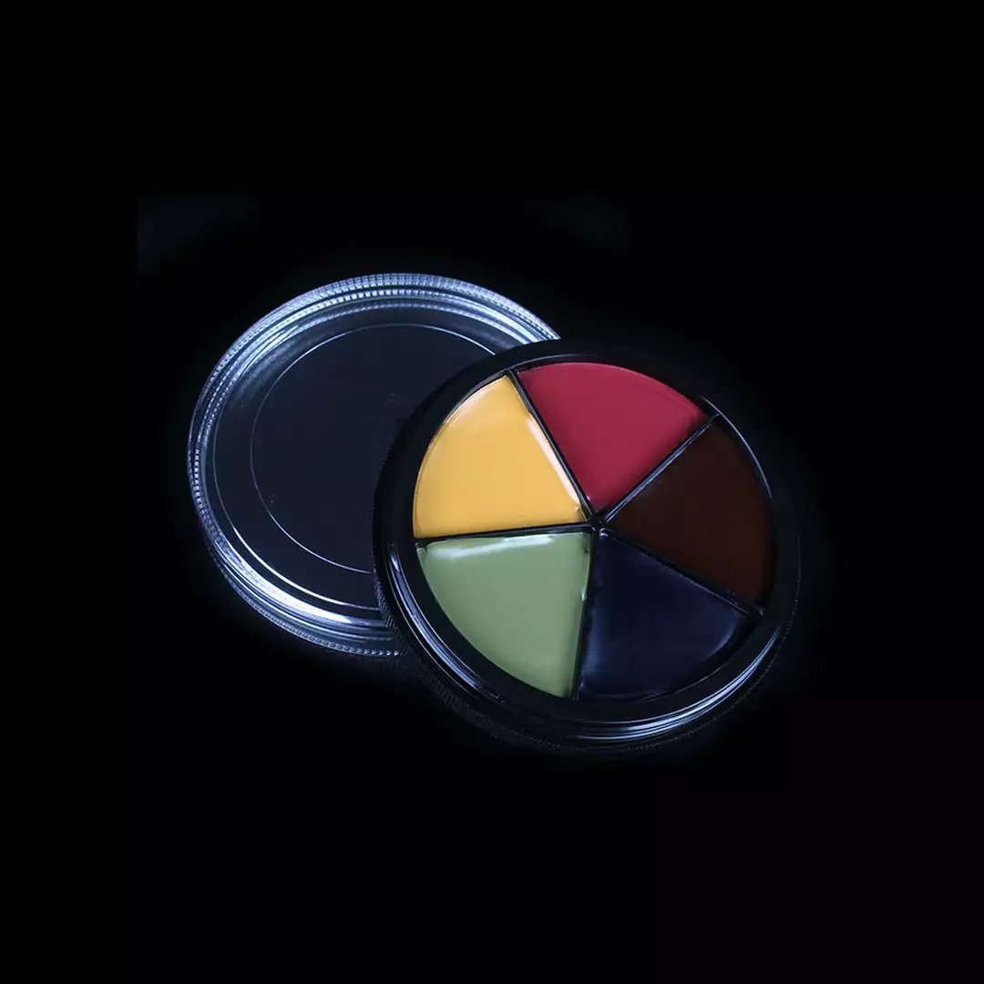 The ProColorRing™ Bruise Makeup Palette contains: Bloody Rose, Midnight Sky, Burnt Maroon, Spanish Olive and Maize Yellow.