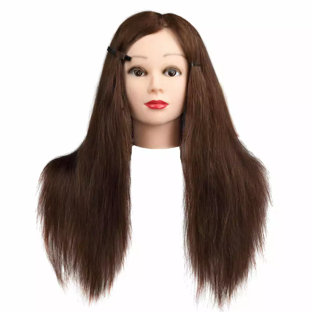It also features 100% real human hair making it ideal for realistic styling using your own heating equipment (below 120C) and most hair products including shampoo, hair gel, hair spray, wax and colour dye (but may be permanent). The human hair is a natural dark brown with a high density of hair at 260 per cm2 and extra long at 56cm.