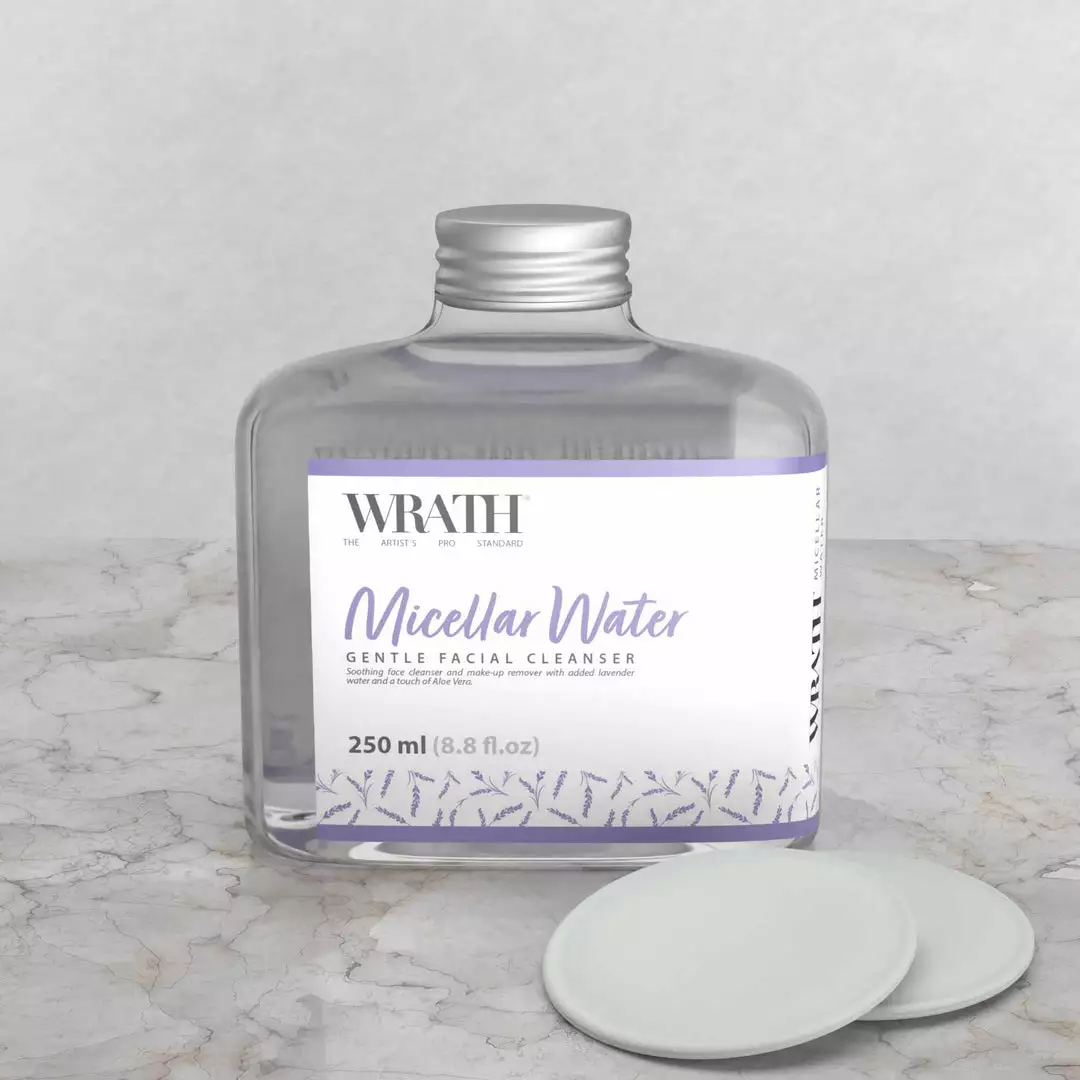 WRATH Micellar Water is a gentle face cleanser and make-up remover created with added lavender water and a touch of Aloe Vera.