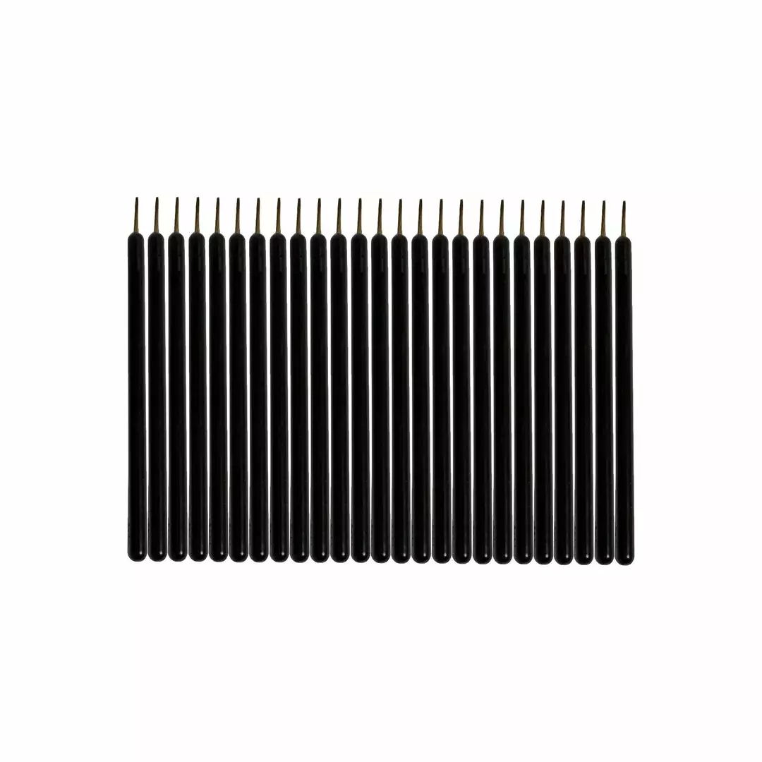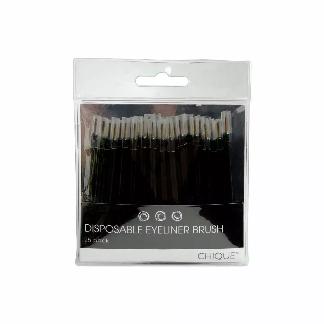 High quality construction disposable extra fine eyeliner brushes with firm natural bristles; made from a durable solid plastic handle.