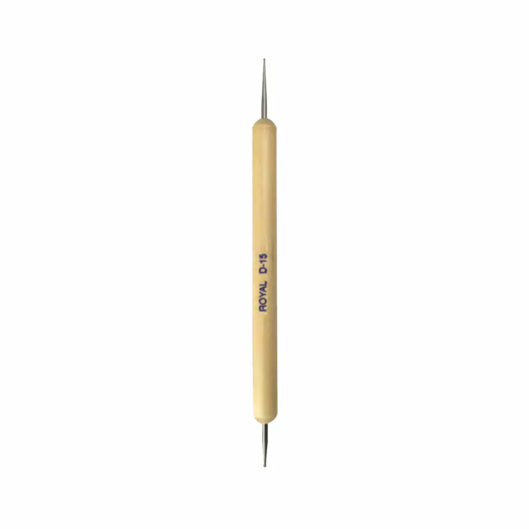 High quality finish sculpting tool with a solid wooden handle finished with metallic blue lettering and dual high strength stainless steel machined tool tips.