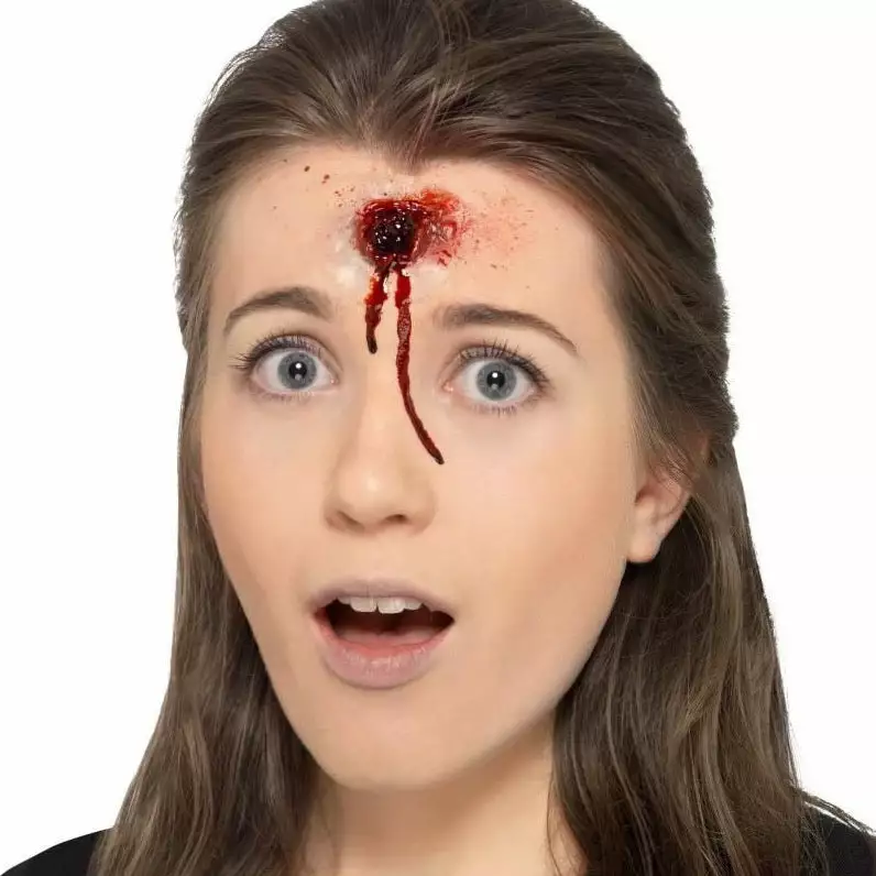 Smiffys Make-up FX Hole in the Head is a latex prosthetic that simulates a bullet hole. ideal for fancy dress, parties and Halloween. Includes an adhesive.