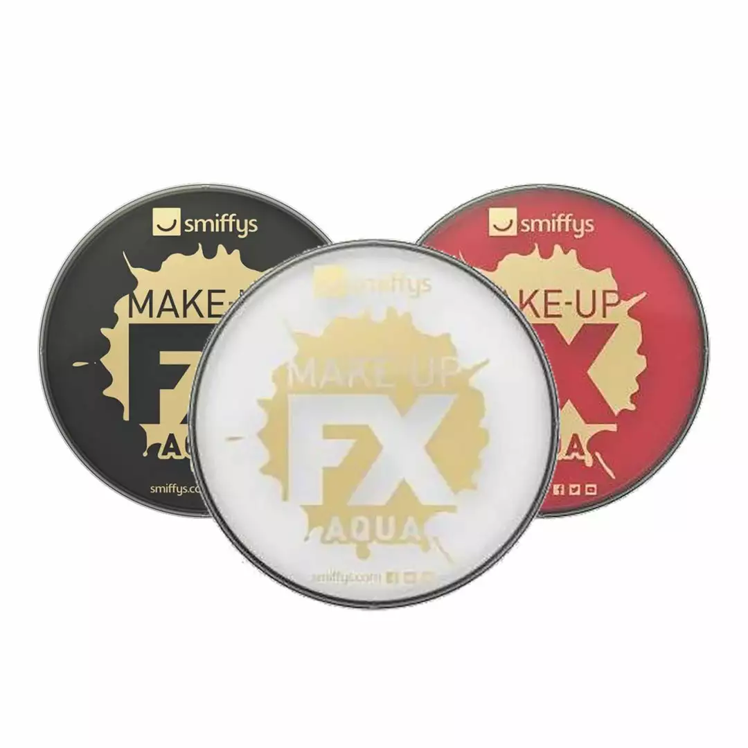 Transform your outfit with the Smiffy’s Make-Up FX Aqua Face and Body Paint in White. Activate the make-up with water. It forms the perfect colour base for a zombie or a clown!