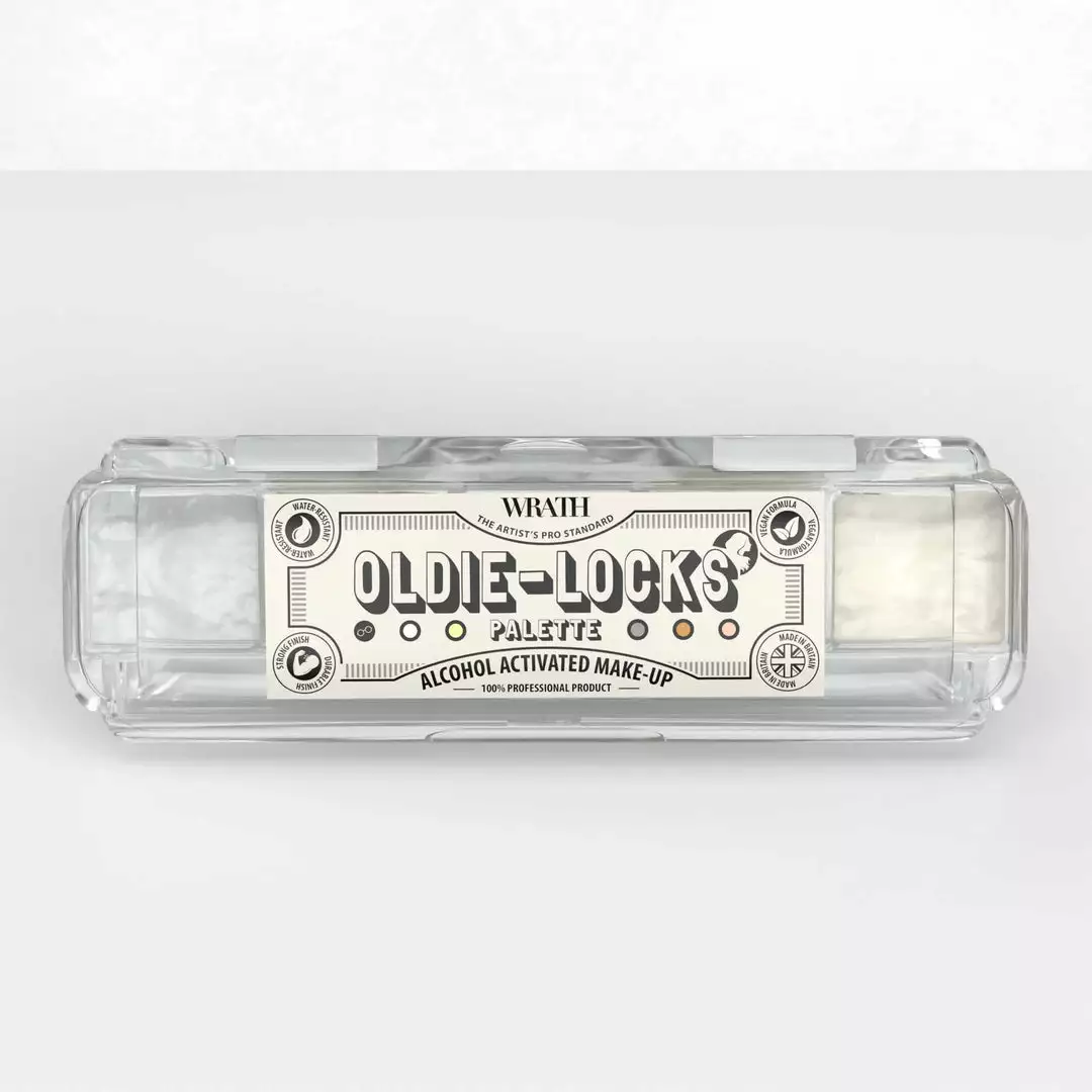 The Oldie-locks palette is an handy compact palette for hair ageing effects. Featuring a white and grey with two yellow tones and a light pink; all the shades required to create effective and realistic aged hair. Requires WRATH Alcohol Activator to use (sold separately).