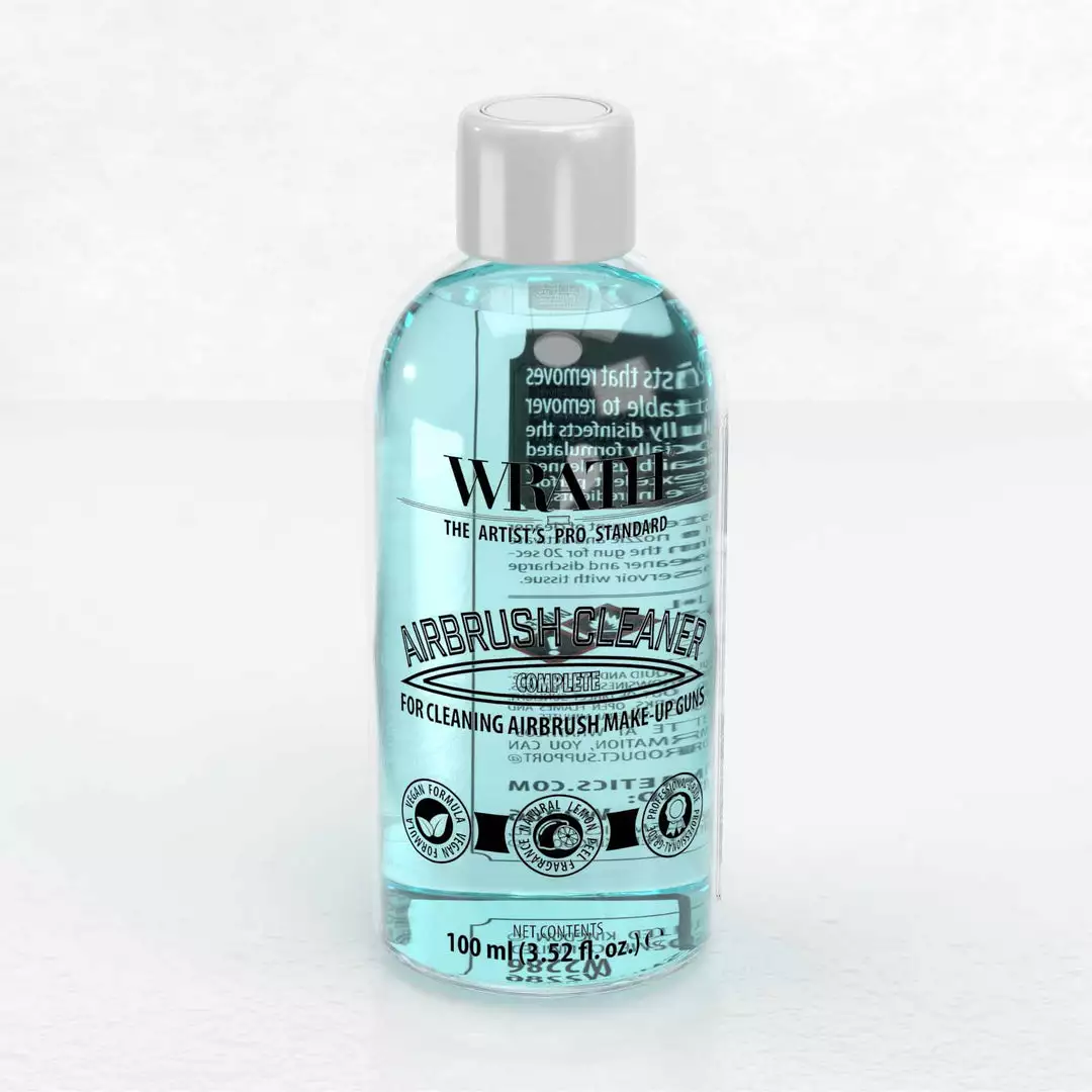 A professional complete airbrush cleaner for make-up artists that removes most airbrush make-up and lubricates the airbrush.