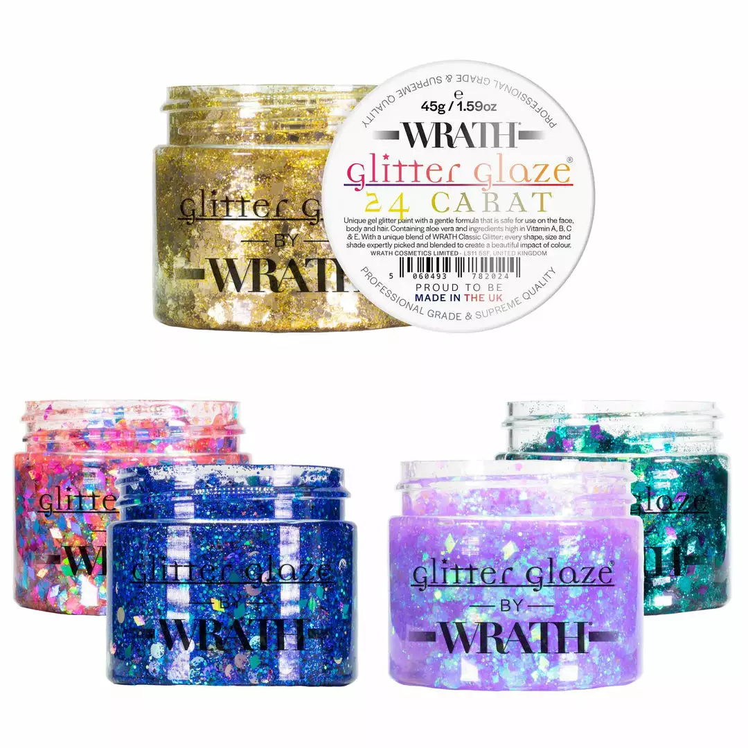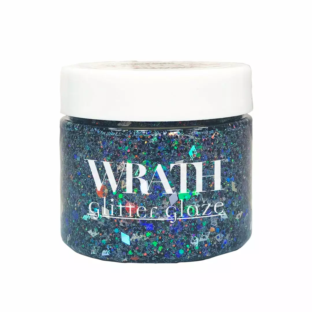 WRATH Glitter Glaze is a diverse and wonderful gel glitter with gentle ingredients that are safe for use on the face, body and hair. Containing aloe vera and ingredients that are high in Vitamin A, B, C & E.