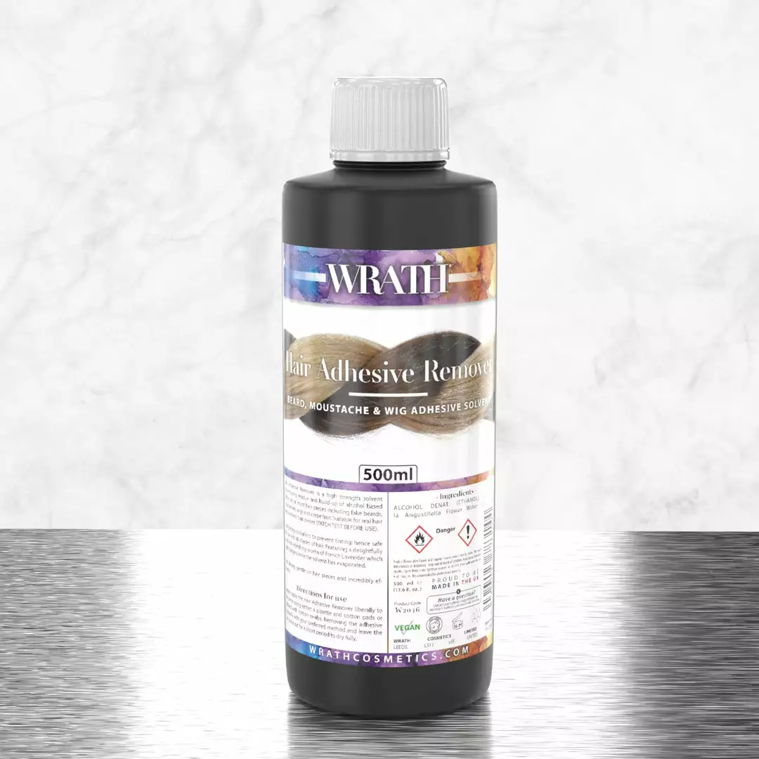 Hair Adhesive Remover is a high strength solvent for removing residue and build-up of alcohol based adhesives on most hair pieces including fake beards, moustaches, wigs and crepe hair. Suitable for real hair and synthetic hair pieces.