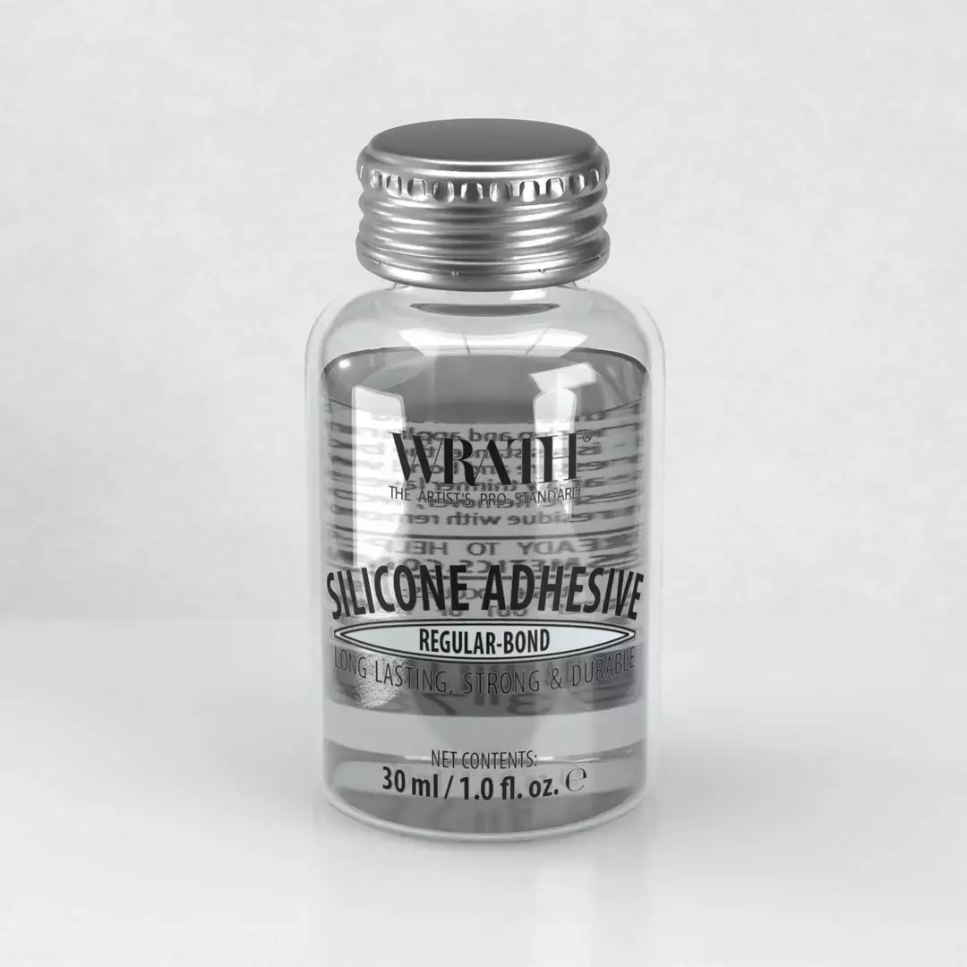 WRATH Silicone Adhesive – Regular Bond is a strong professional silicone adhesive for application of prosthetics and appliances to the skin. Incredibly durable, long lasting and water-resistant formula.